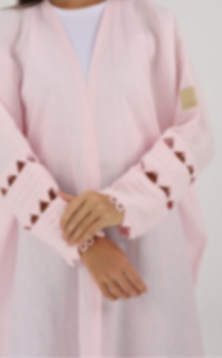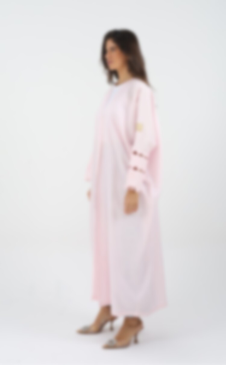 Pink Linen AbayaLinen abaya with sleeve cut outs and pleats